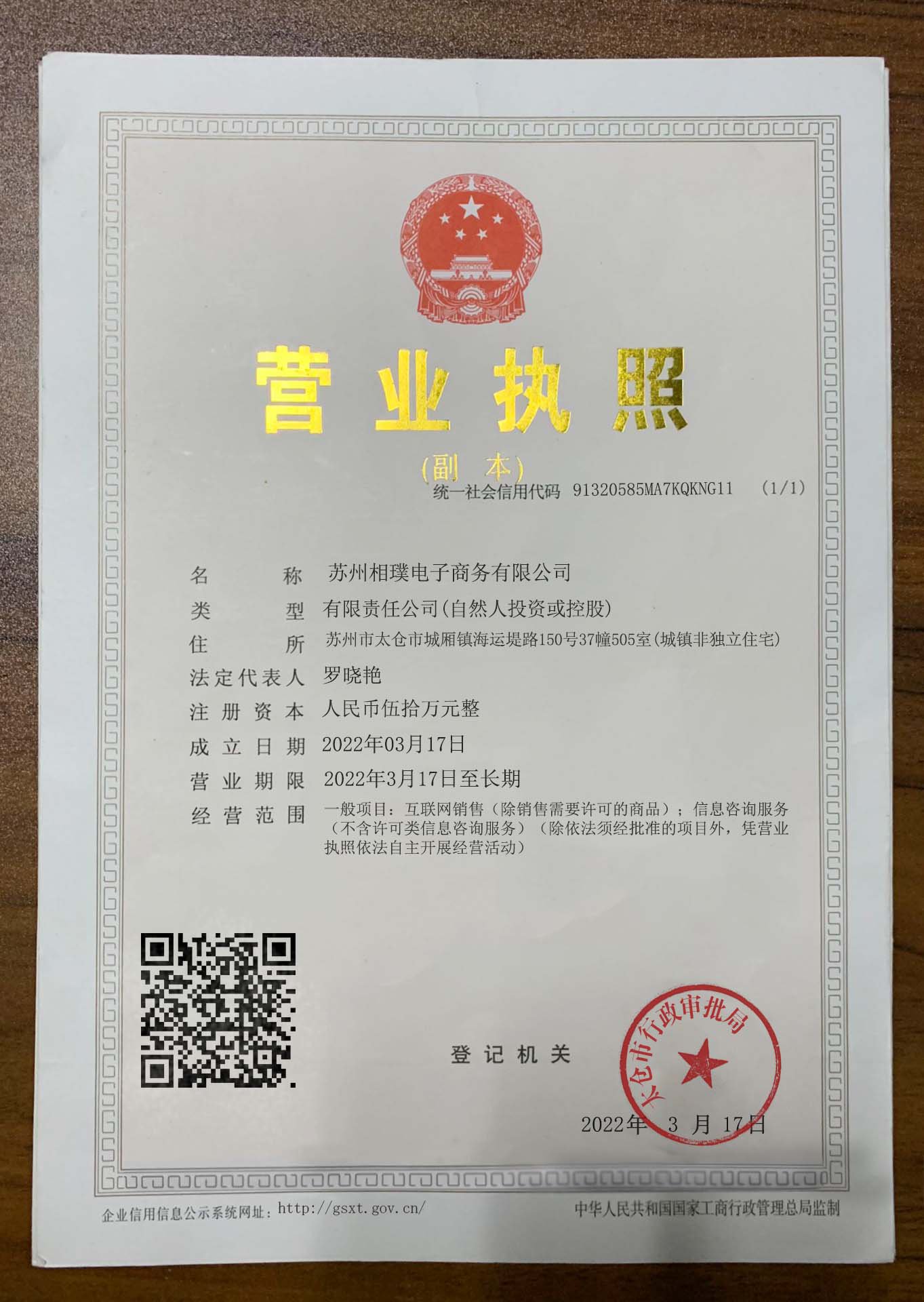 Corporate name:Suzhou Xiangpu E-commerce Co., Ltd